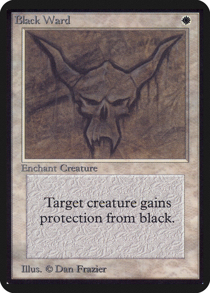 Enchanted creature has protection from black. This effect doesn't remove Black Ward.